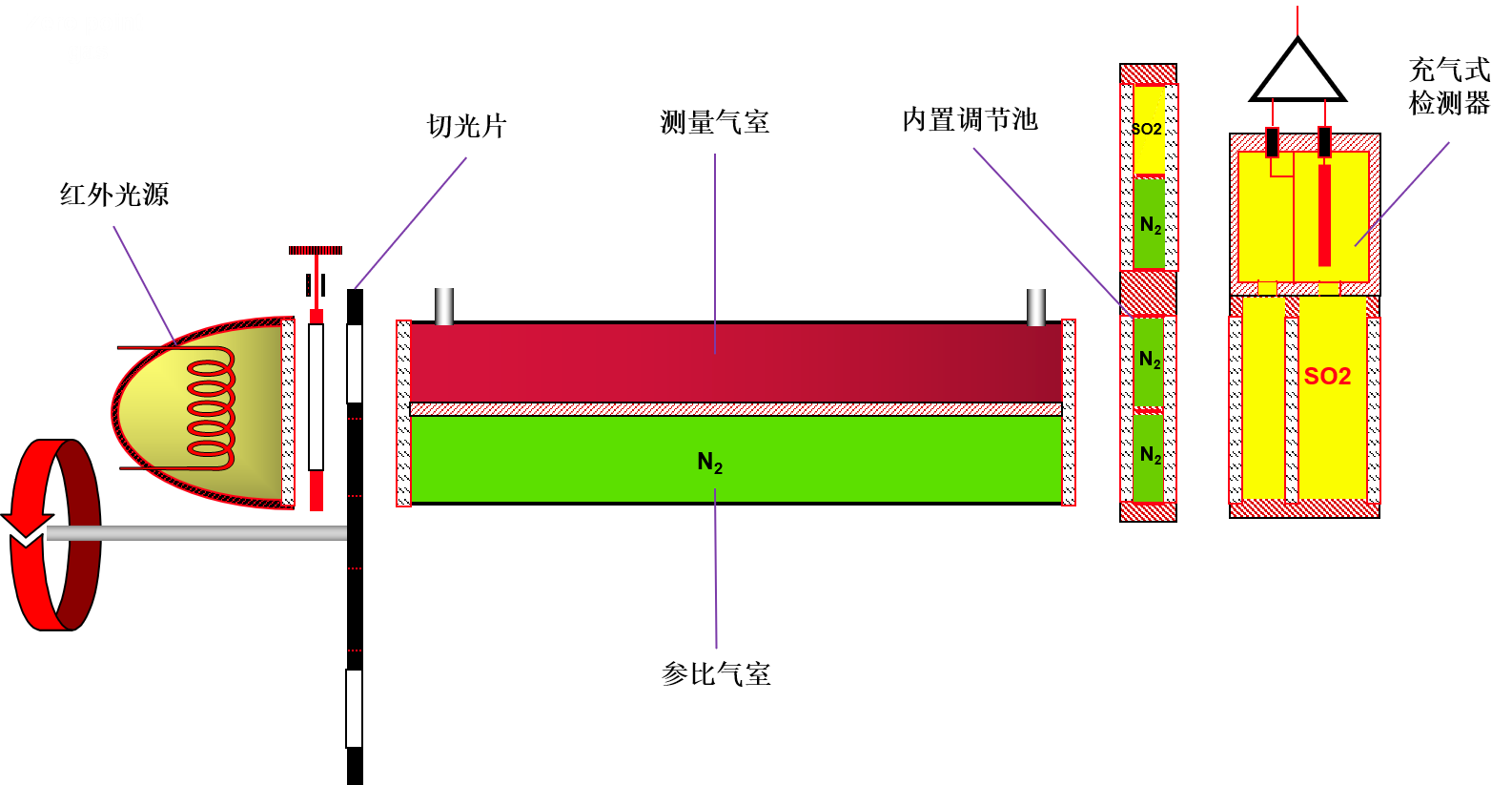 选择配置,消除气体交叉干扰。典型应用:消除背景气中CH4对SO2的测量干扰。